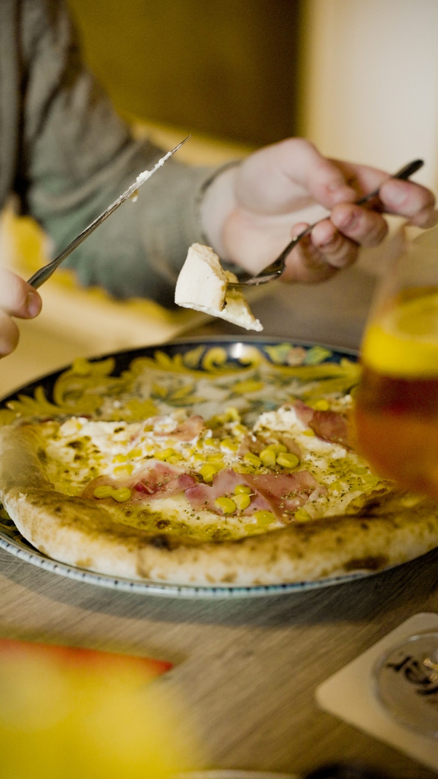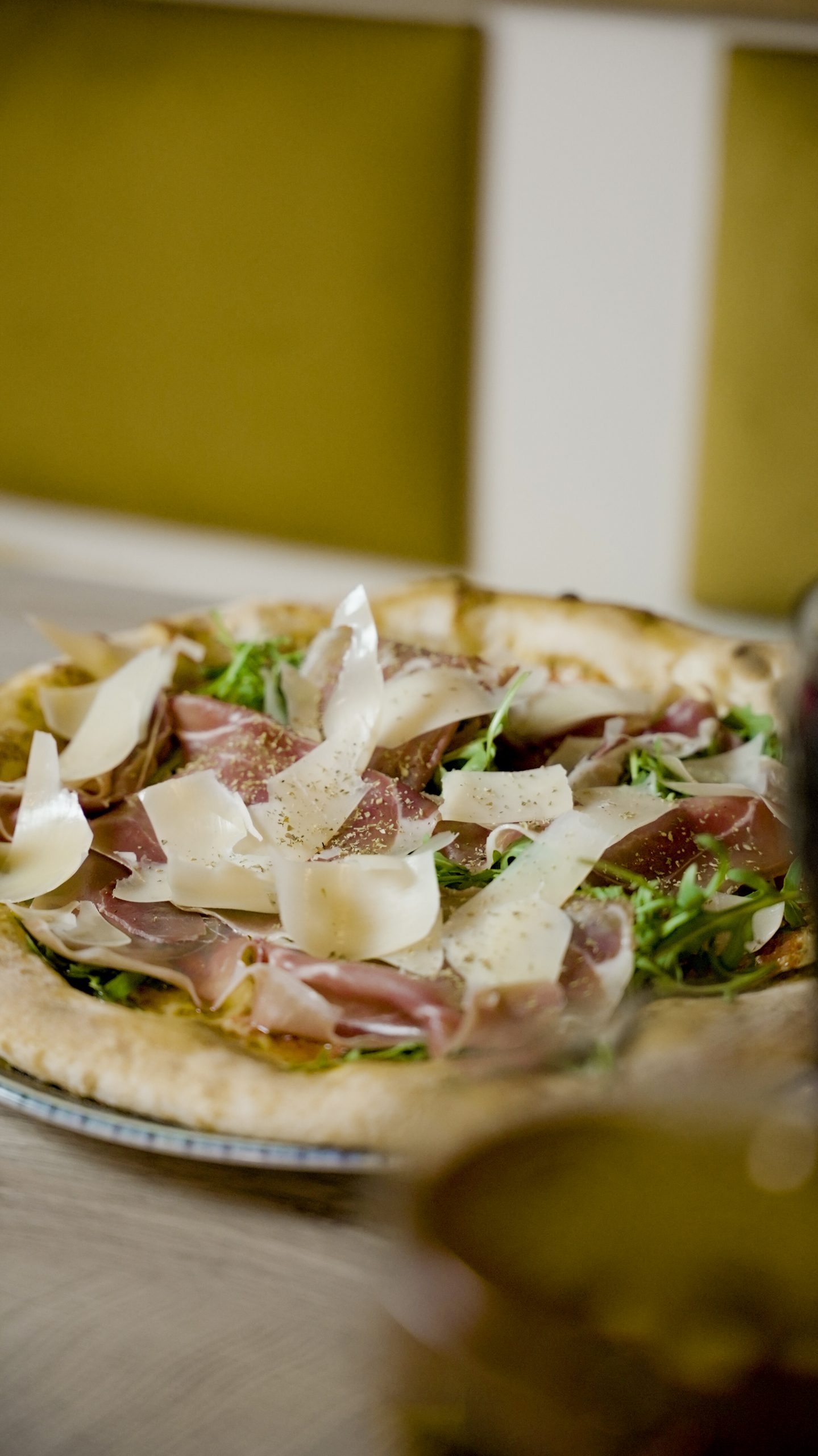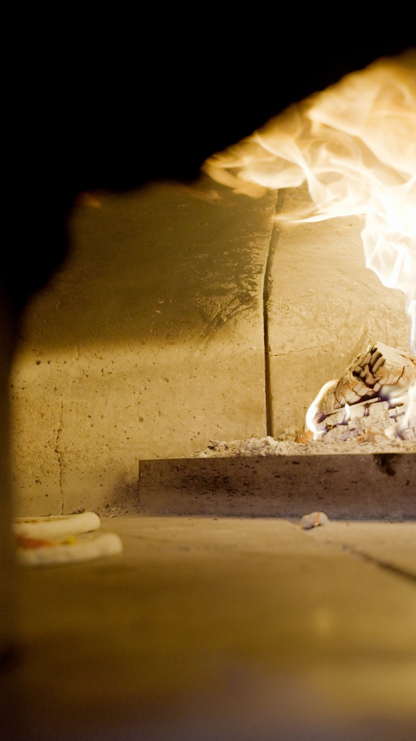 Der Holzofen bringt ein besonderes Aroma – die Hitze sorgt für knusprigen Boden und leicht rauchige Note. Das spürt man bei jeder Scheibe.